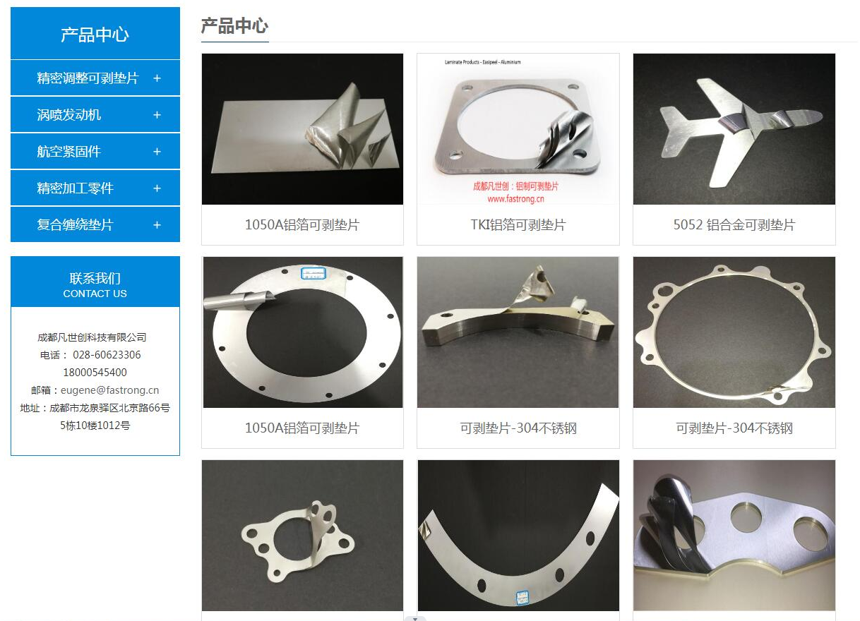 成都凡世创科技有限公司主要向客户提供航空航天零部件、加工件、精密调整材料及可剥层压垫片(包括304不锈钢、碳钢、铝合金、黄铜、钛合金、聚酰亚胺等材料,符合AMS-DTL-22499,AMS4013、CMS-MT-301及西马克标准)、缠绕垫片、伺服阀、各类进口设备、仪器等产品。公司可为航空航天、船舶、轨道交通、发电、炼钢炼铁、高端装备制造行业提供精密调整解决方案,并承接来图设计、生产。公司通过了AS9120航空航天体系认证、ISO9001质量管理体系认证、AAA级企业信用认证。